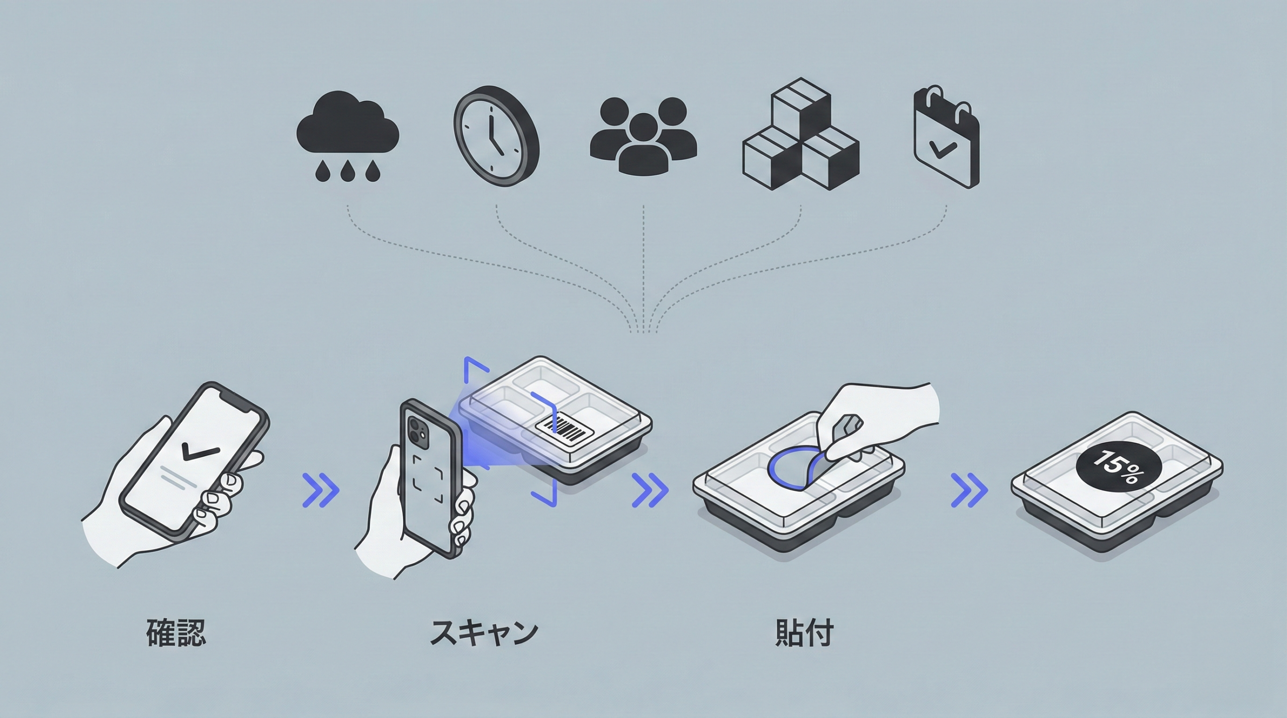 スーパーマーケットにおいて、閉店前の値引き判断は店舗の利益に直結する重要な業務です。どのタイミングで、どの商品を、いくら値引きするか。この判断一つで売上と値下・廃棄ロスのバランスが大きく変わります。しかしその意思決定は、ベテラン社員の長年の経験に依存する部分が大きく、担当者によってばらつきが生じやすいという構造的な課題がありました。